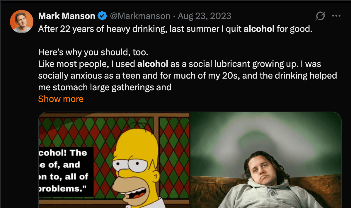 You can go on Twitter, LinkedIn, or Instagram and see countless posts where quitting alcohol is used purely to drive engagement.